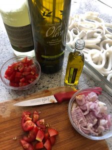 - 2 pounds fresh calamari, cleaned and cut into small rings
