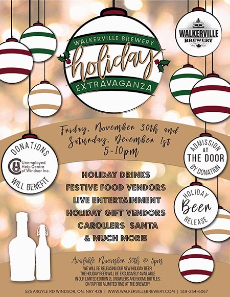 Join us at the Walkerville Brewery as we ring in the Holiday season with two nights of our annual ‘Holiday Extravaganza’. Loaded with festive entertainment, food & drink, shopping and of course, craft beer!