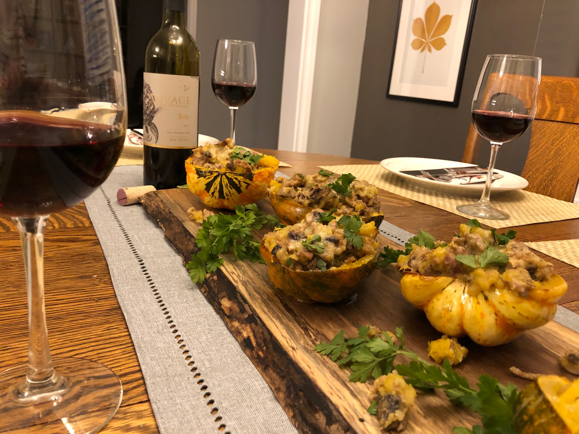 Turkey Mushroom Apple Stuffed Acorn Squash.